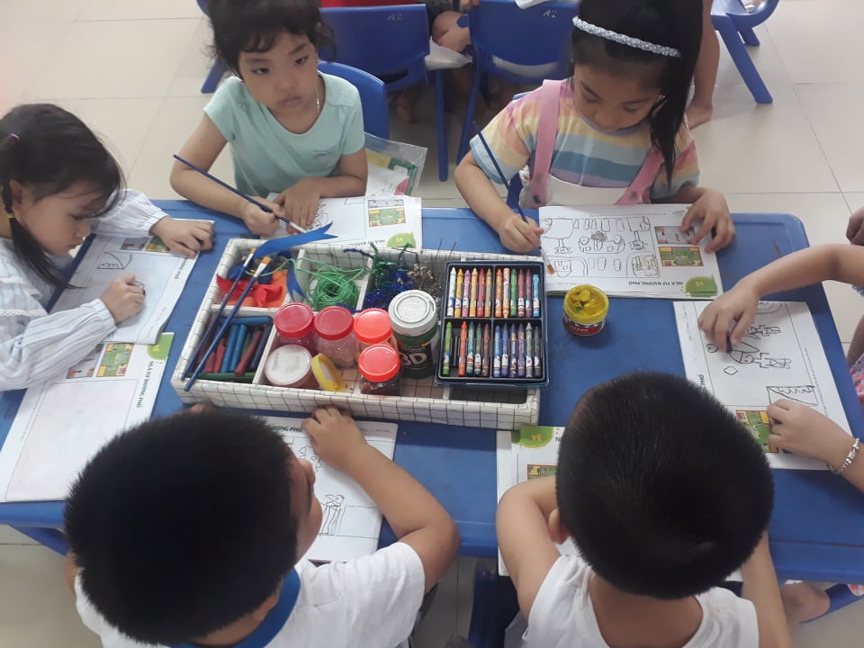 Các bé sử dụng nhiều nguyên vật liệu để hoàn thành bài vẽ.