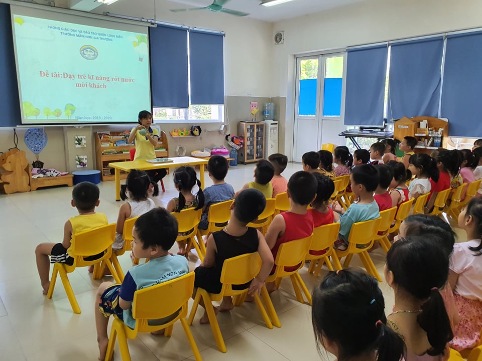Với giờ học dạy trẻ kĩ năng thực hành cuộc sống các cô giáo luôn đưa ra nhiều hình thức, phương pháp khác nhau để giúp trẻ hứng thú, kích thích tính sáng tạo, ham học hỏi ở trẻ. Là bài học trẻ được thực hành trực tiếp và về cuộc sống xung quanh diễn ra hằng ngày nên bạn nhỏ nào cũng vui vẻ và thích thú. Bây giờ mời các bạn nhỏ đến với những hình ảnh về giờ học kĩ năng "Rót nước mời khách" của các bạn nhỏ lớp MGN B3 nhé.