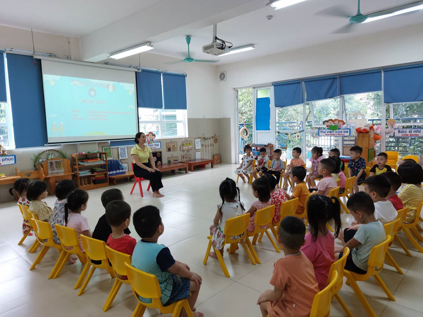 Dưới đây là một số hình ảnh của cô và trò lớp MGN B4 tham gia hoạt động rèn kỹ năng: Ngồi học đúng tư thế.