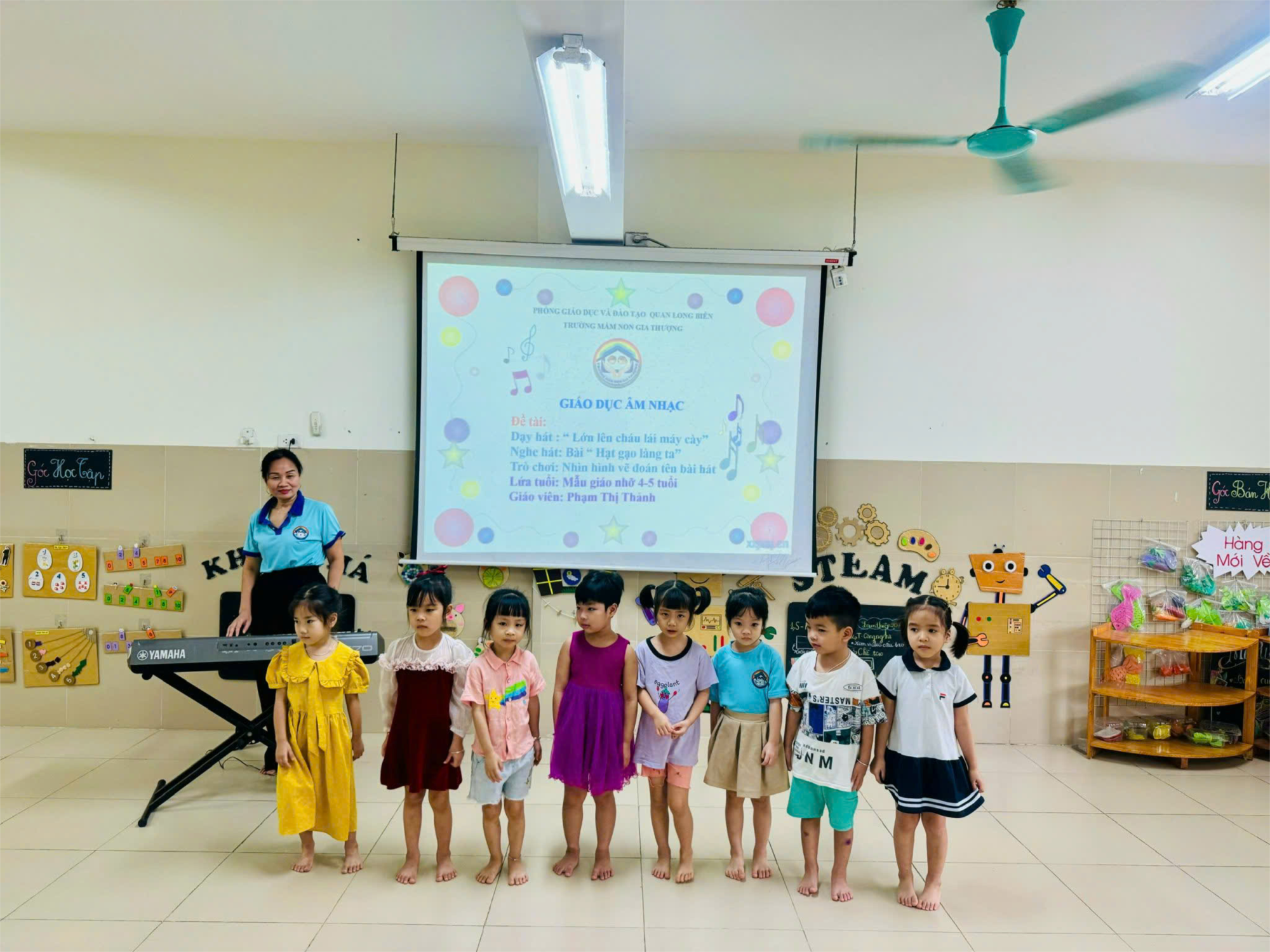 Cô Thảnh hát cho các bé MGN B4 nghe, bé Khánh Linh biểu diễn cùng cô