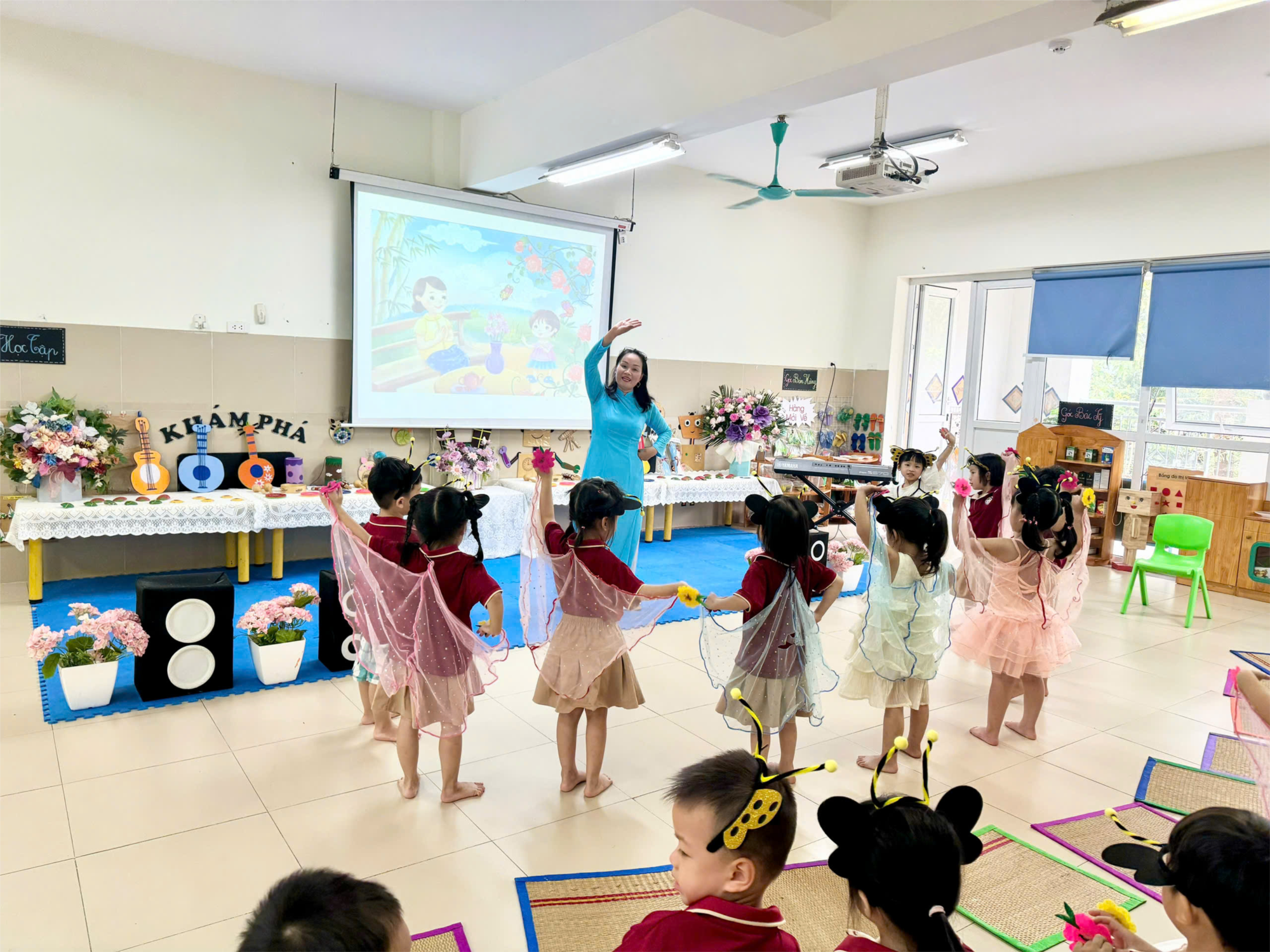 Hội thi giáo viên dạy giỏi cấp trường được diễn ra hàng năm của trường MN Gia Thượng, là một hoạt động chuyên môn nghiệp vụ quan trọng. Với mục đích góp phần đẩy mạnh các phong trào thi đua, khuyến khích động viên, tuyên dương, nhân rộng những điển hình tiên tiến trong hoạt động chăm sóc, nuôi dưỡng, giáo dục trẻ nhằm nâng cao chất lượng giáo dục mầm non, tạo động lực phát triển sự nghiệp giáo dục mầm non của trường. Đồng thời, đây cũng là dịp để giáo viên khẳng định bản thân, giao lưu, học hỏi, rút kinh nghiệm trong giảng dạy…Hội thi nhằm động viên, tạo cơ hội cho giáo viên rèn luyện, tự học và sáng tạo, tạo điều kiện để giáo viên thể hiện kỹ năng nghề nghiệp, học tập, trao đổi kinh nghiệm về giảng dạy, tổ chức lớp học; khai thác sử dụng sáng tạo, hiệu quả phương tiện, đồ dùng dạy học giúp cho học sinh đạt được kết quả tốt nhất. Sau đây là một số hình ảnh của cô và trò lớp MGN B4 trong hoạt động thi GVG cấp trường môn GD âm nhạc: