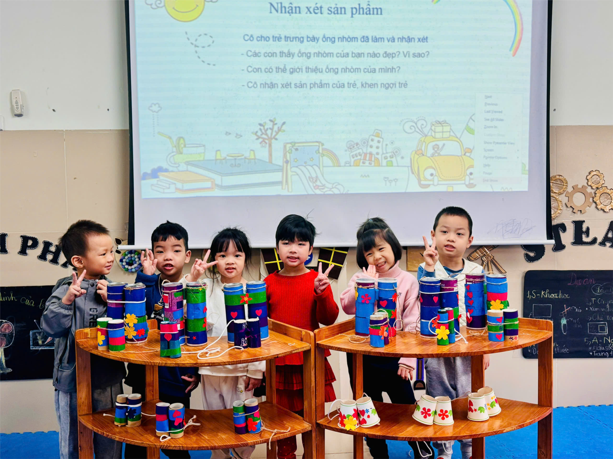 Các bé bàn 1 lớp MGN B4 đã làm xong chiếc ống nhòm thật đẹp để tặng chú bộ đội