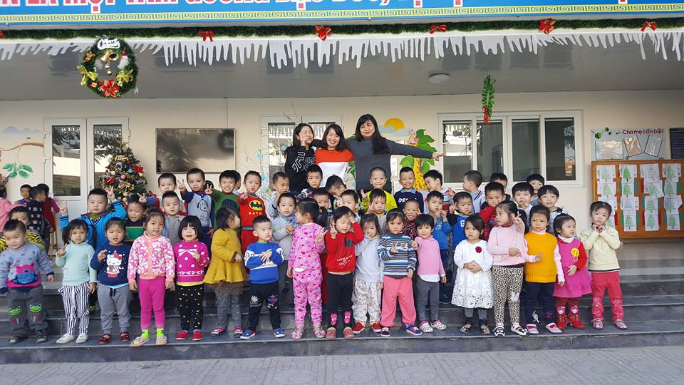 Các cô và các bạn cùng chụp ảnh kỉ niệm ngày lễ giáng sinh đầy ý nghĩa