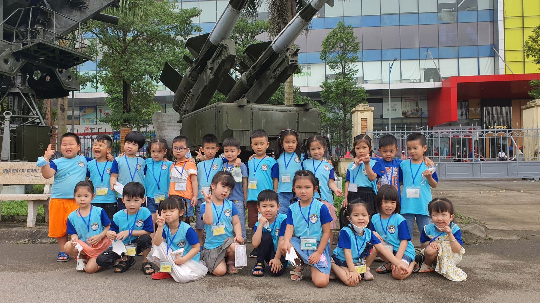 Đúng 7h 45 phút, Xe ô tô chuyển bánh đưa các bé đến địa điểm đầu tiên, đó là Bảo tàng phòng không không quân