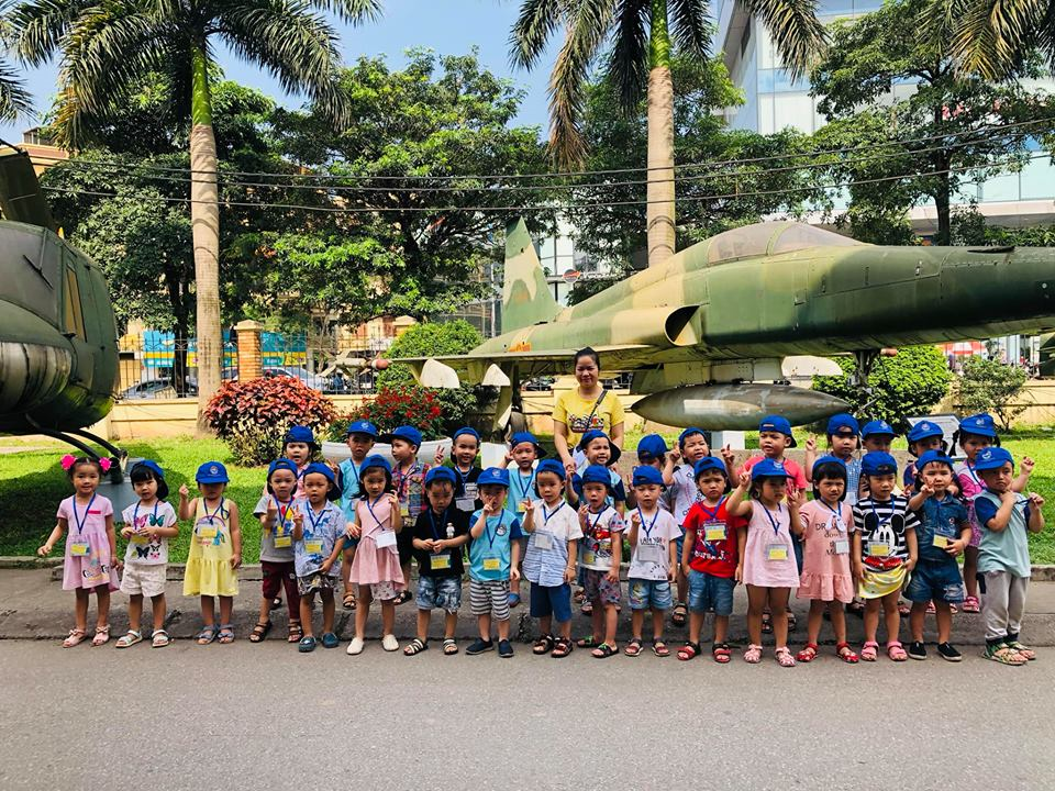 Đúng 7h 30 phút, Xe ô tô chuyển bánh đưa các bé đến địa điểm đầu tiên, đó là Bảo tàng phòng không không quân