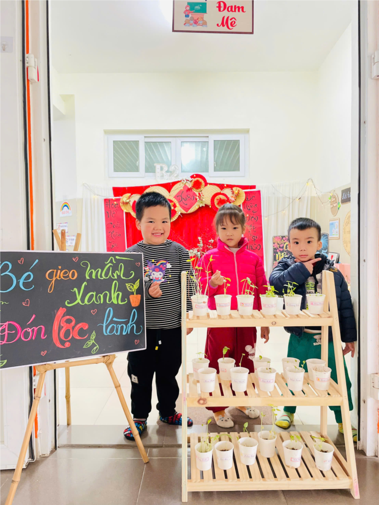 Các bé cùng nhau chụp ảnh với những cây mầm dễ thương.