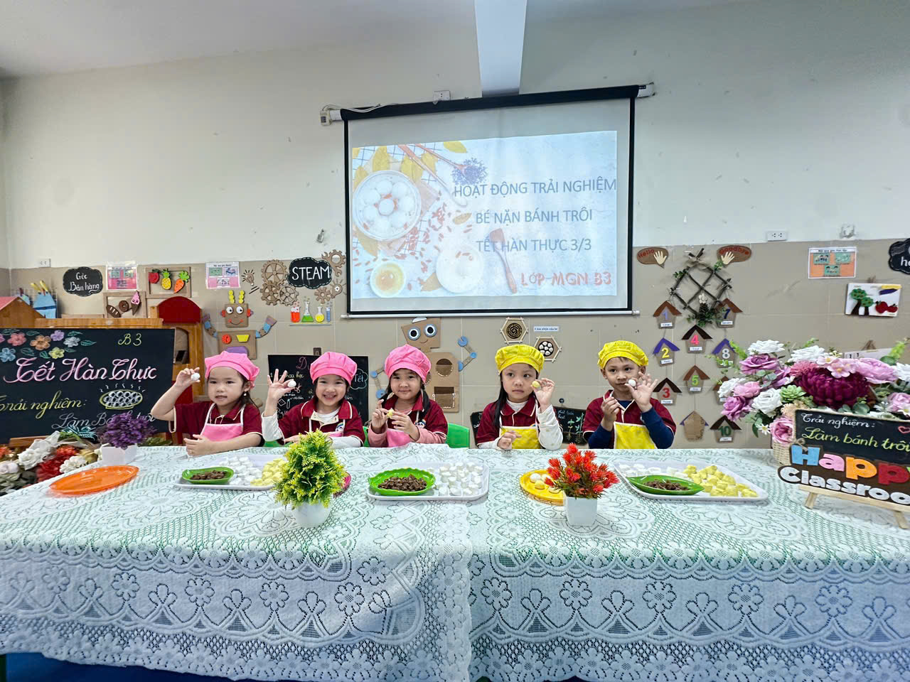 Nhìn các bạn nặn bánh trôi rất vui tươi