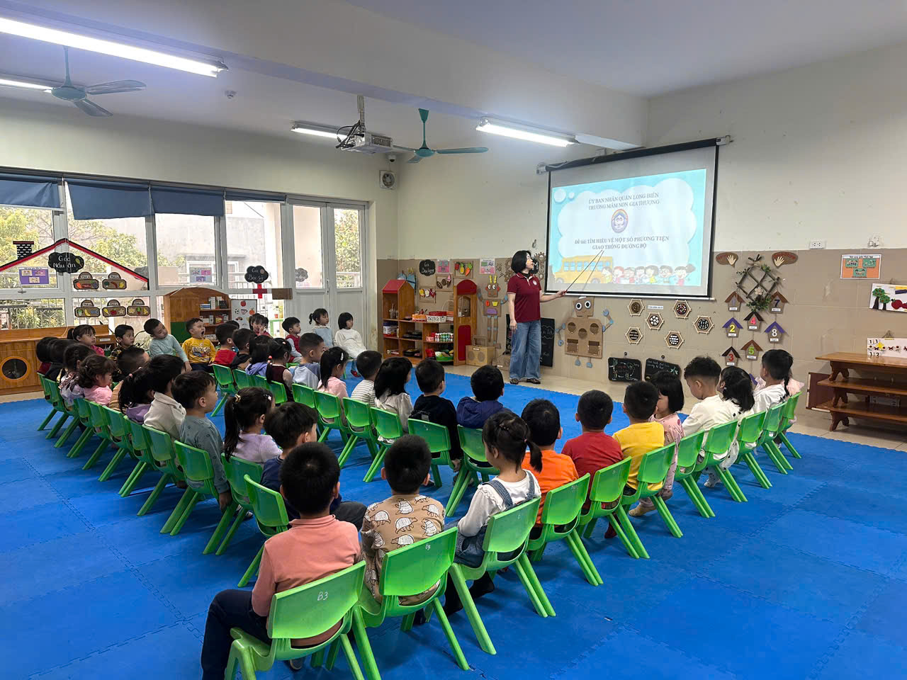 An toàn giao thông là một trong những chủ đề nóng hổi, luôn được xã hội quan tâm. Chính vì vậy, ngay từ lứa tuổi mầm non, các bài học về tham gia giao thông đúng cách đã được lồng ghép vào chương trình dạy cho trẻ một số phương tiện giao thông đường bộ. Giáo dục an toàn giao thông cho trẻ mầm non là cung cấp kiến thức, kỹ năng cơ bản giúp trẻ có thêm hiểu biết thiết thực về luật lệ giao thông. Điều này có ý nghĩa vô cùng quan trọng cho sự phát triển của trẻ: Giúp bé tham gia giao thông an toàn: khi được trang bị các kiến thức đầy đủ, bé sẽ có ý thức tham gia giao thông đúng đắn. Điều này giúp con tránh khỏi những nguy hiểm trên đường đi học, đi chơi khi không có người lớn.Tạo thói quen tốt từ nhỏ: nếu được giáo dục từ nhỏ, trẻ sẽ ghi nhớ lâu và thực hiện mà không cần đến sự nhắc nhở.Hình thành tính kỷ luật, sống có nguyên tắc: giáo dục an toàn giao thông từ sớm giúp bé sống có kỷ luật và nguyên tắc hơn. Đây cũng chính là tiền đề để sau này trẻ trở thành người biết tuân thủ pháp luật và sống có ích cho xã hội. Biết phê phán với những hành vi sai: khi ý thức được hành động đúng, đồng thời con cũng sẽ nhận biết được các hành vi sai trái như: không đội mũ bảo hiểm, vượt đèn đỏ… Nhờ vậy, bé sẽ tránh phạm phải lỗi sai tương tự và biết dũng cảm lên tiếng phê phán các hành vi vi phạm.Biết giúp đỡ và chia sẻ với người khác: không chỉ đem đến lợi ích cho bản thân, trẻ còn có thể giúp đỡ và chia sẻ với người xung quanh khi trẻ hiểu biết về luật lệ an toàn giao thông. Trẻ có thể giúp người lớn tuổi qua đường, hướng dẫn các bạn tham gia giao thông an toàn hay nhắc nhở khi bố mẹ lơ là. Những điều này giúp bé tự tin và chủ động hơn khi tham gia giao thông và sau đây là một số hình ảnh bé với giờ học khám phá một số phương tiện giao thông đường bộ.