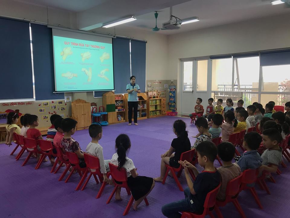 Hay cô và các bạn lớp A4 cùng trò chuyện về các bước rửa tay đúng cách và thời điểm cần rửa tay sạch