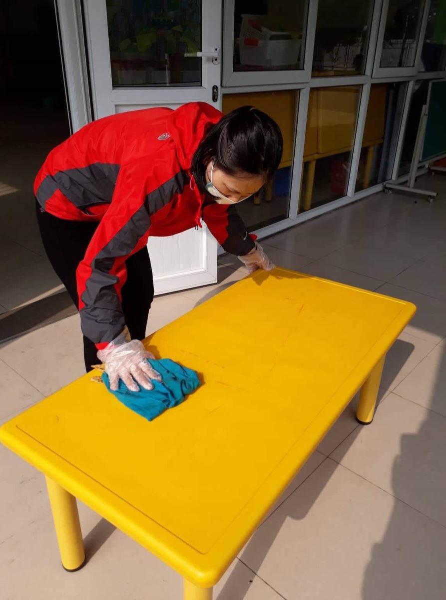 Trước tì !important;nh hình diễn biến phức tạp, khó lường của dịch bệnh COVID-19 và để tiếp tục thực hiện hiệu quả các giải pháp phòng, chống dịch COVD-19. Ban Giám Hiệu trường Mầm non Gia Thượng thường xuyên tổ chức các buổi lao động, dọn vệ sinh phòng chống dịch bệnh trong nhà trường. Các cô giáo lớp nhà trẻ D2 cũng luôn đề cao tinh thần phòng dịch, tham gia lao động dọn vệ sinh, lau chùi phòng học, phòng chức năng. Đặc biệt là tay nắm cửa, bàn, ghế, đồ dùng đồ chơi và những nơi trẻ thường xuyên tiếp xúc bằng dung dịch khử khuẩn.
