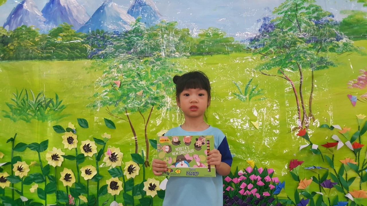 Bạn nhỏ đang thể hiện bức tranh của mình