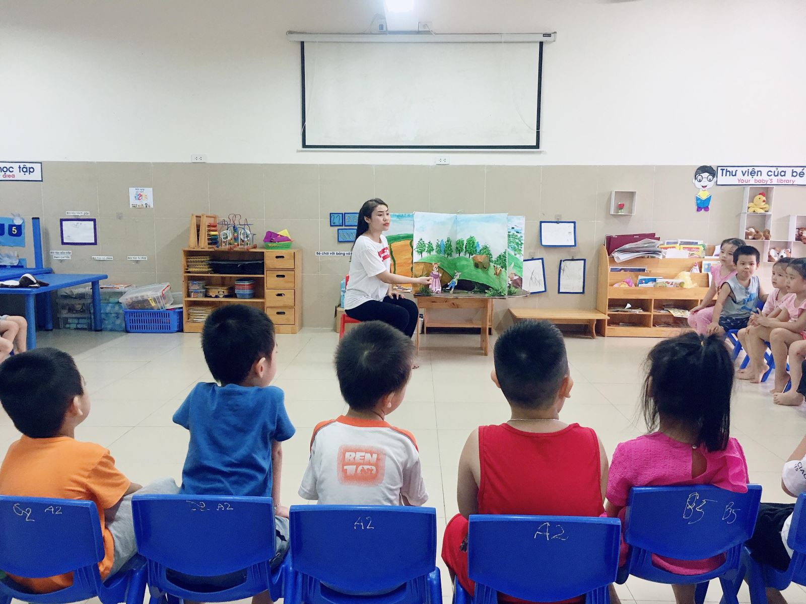Cả lớp đang tập trung lắng nghe cô kể chuyện