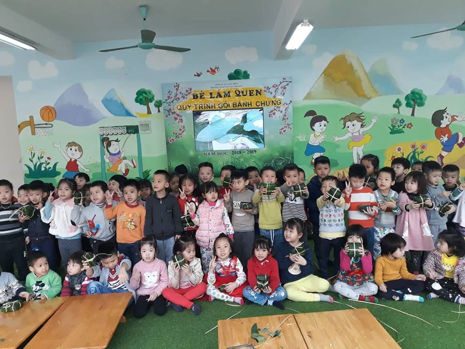 Bánh chưng là một loại bánh không thể thiếu được trong ngày tết cổ truyền của dân tộc ta . Bánh chưng có vị trí đặc biệt trong tiềm thức của mỗi người Việt và là một số ít loại bánh truyền thống được sử sách ghi lại. Hòa chung với không khí tết đến xuân về, ngày 24/1/2019 cô và trò trường Mầm non Gia Thượng đã tổ chức gói bánh chưng cho trẻ, đón tết sớm để giúp các con có thêm những hiểu biết về phong tục tập quán trong ngày tết cổ truyền của dân tộc.Trong hoạt động gói bánh chưng cùng cô giáo, các con được cô giáo phân công mỗi bé một việc: Bé thì giúp cô chọn lá dong, bé chọn lạt, bé xúc gạo, bé xúc đỗ, bé thì gắp thịt vào bánh… Những đôi bàn tay nhỏ nhắn thoăn thoắt làm những công việc rất nhanh nhẹn và rất gọn gàng và niềm vui cứ rạng ngời trên gương mặt, nụ cười và ánh mắt của các con. Hoạt động gói bánh chưng cùng cô thực sự là một cơ hội để các bé được trải nghiệm và tích lũy được thêm nhiều kỹ năng sống: Các bé được học, được giao nhiệm vụ trong nhóm, được tham gia bàn bạc và được cô giáo phân công. Các bé sẽ được các cô hướng dẫn cách gói bánh, trẻ được biết đến các nguyên liệu gói bánh, được tự tay thực hiện các công đoạn; Lau lá, múc gạo, đỗ, gắp thịt một cách gọn gàng khéo léo. Và ở khâu cuối cùng, trẻ được bàn bạc quyết định cách đánh dấu bánh chưng của mỗi lớp, được giao tận tay bánh đã gói để đưa vào luộc, được tham gia hoạt động vui chơi nhóm trong khi chờ bánh chín và được học cách cảm nhận niềm vui, sự tự hào và hãnh diện khi được nếm chính sản phẩm do mình góp công làm ra. Chắc chắn hoạt động gói bánh chưng cùng cô giáo sẽ là một câu chuyện kể của các em với ông bà, cha mẹ trong dịp Tết Kỷ Hợi này và đây cũng sẽ là một trong những kỉ niệm đẹp lưu lại trong kí ức tuổi thơ của các con.