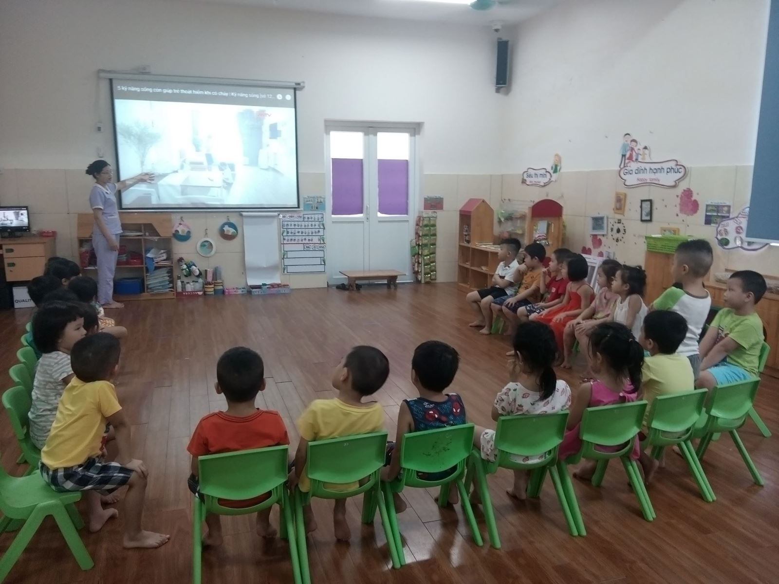 Hôm nay các bạn nhỏ lớp MGN B5 cùng đến với giờ học kỹ năng sống : Kỹ năng thoát hiểm khi có cháy".