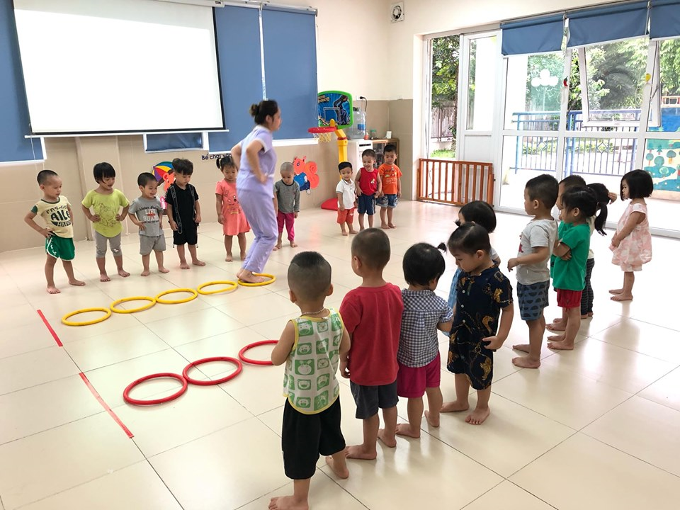 Hoạt động giáo dục thể chất là một trong những hoạt động mang tính tích hợp. Trẻ không chỉ được vận động một cách thoải mái, tích cực để phát triển thể lực và thể chất mà qua hoạt động giáo dục thể chất trẻ còn học được tính kỷ luật, biết hợp tác chia sẻ cùng bạn và quan trọng hơn nữa là giúp trẻ nghĩ ra các trò chơi để chơi cùng nhau. Giáo dục thể chất là nhân tố quan trọng không thể thiếu trong chuỗi hệ thống giáo dục mà con người cần đến ngay từ độ tuổi mầm non. Các nhà khoa học trên thế giới đã kết luận, hoạt động thể chất không chỉ giúp trẻ khỏe hơn mà còn thông minh hơn. Trong giờ học Phát triển vận động dưới sự hướng dẫn của các cô trẻ được phát huy khả năng một cách tích cực, trẻ mạnh dạn, tự tin hơn, trẻ có kỹ năng chơi nhóm, đoàn kết phối hợp với các bạn trong nhóm để hoàn thành yêu cầu của cô đưa ra. Sau đây là một số hình ảnh của các con: