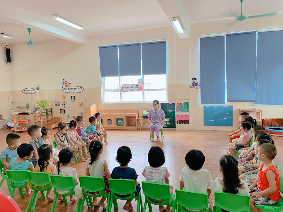 Các bạn đang chăm chú lắng nghe cô hướng dẫn cách ngồi học đấy!