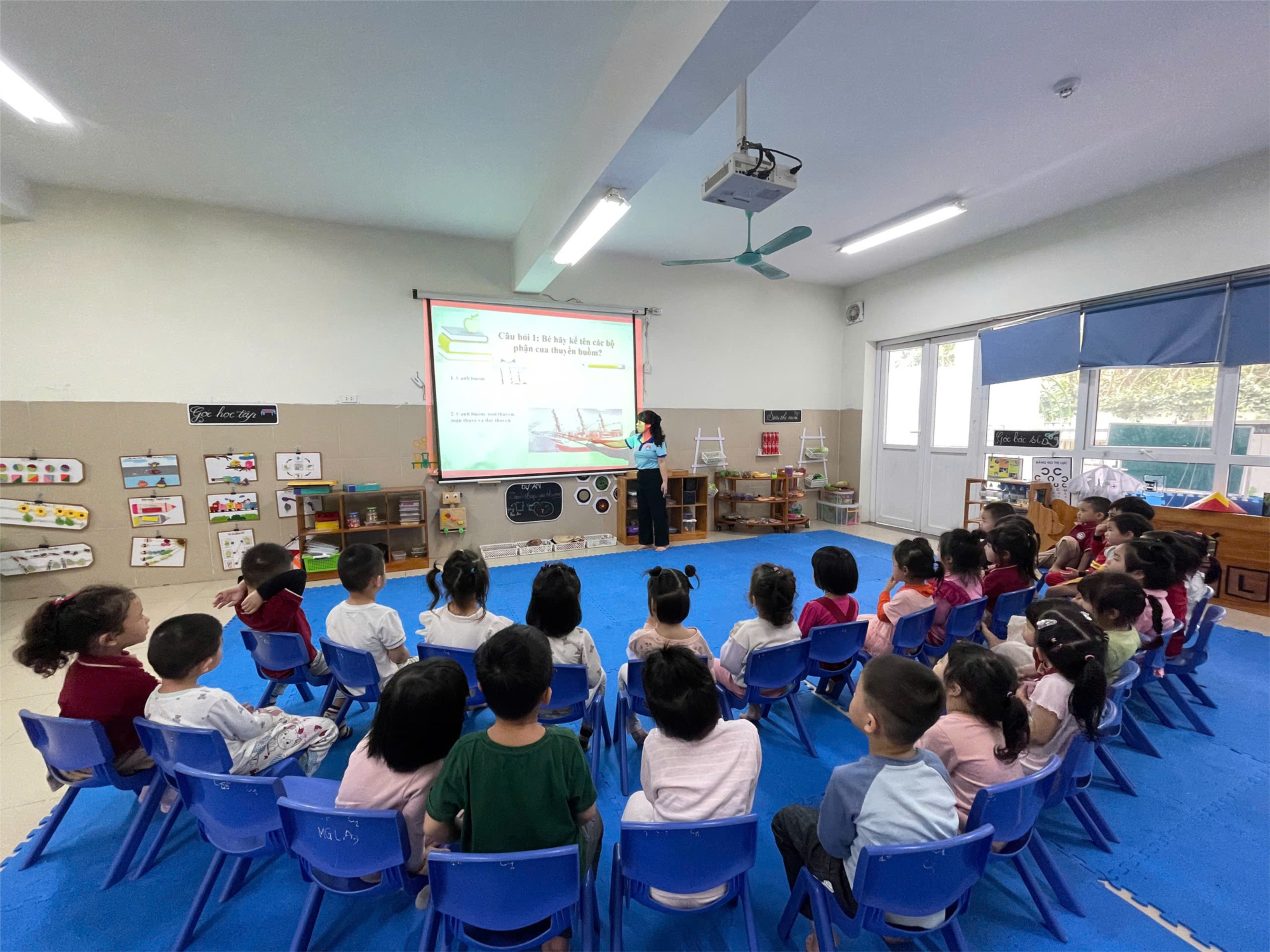Một giờ học đầy hứng thú và bổ ích của các bé lớp C1 – Trường Mầm non Gia Thượng với đề tài “Khám phá thuyền buồm” đã diễn ra thật sôi nổi và hào hứng! Dưới sự hướng dẫn của cô giáo, các con được quan sát mô hình thuyền buồm sinh động, tìm hiểu từng bộ phận của chiếc thuyền như: thân thuyền, buồm, cột buồm, bánh lái… và biết được công dụng của từng bộ phận. Qua hoạt động trò chuyện, quan sát và đặt câu hỏi, các bé dần hình dung được thuyền buồm hoạt động như thế nào, tại sao buồm lại có thể đón gió để thuyền lướt đi trên mặt nước. Không chỉ vậy, các con còn được trải nghiệm trò chơi tương tác trên máy tính. Hoạt động không chỉ mang lại tiếng cười sảng khoái mà còn kích thích tư duy, phản xạ và khả năng tập trung của trẻ.