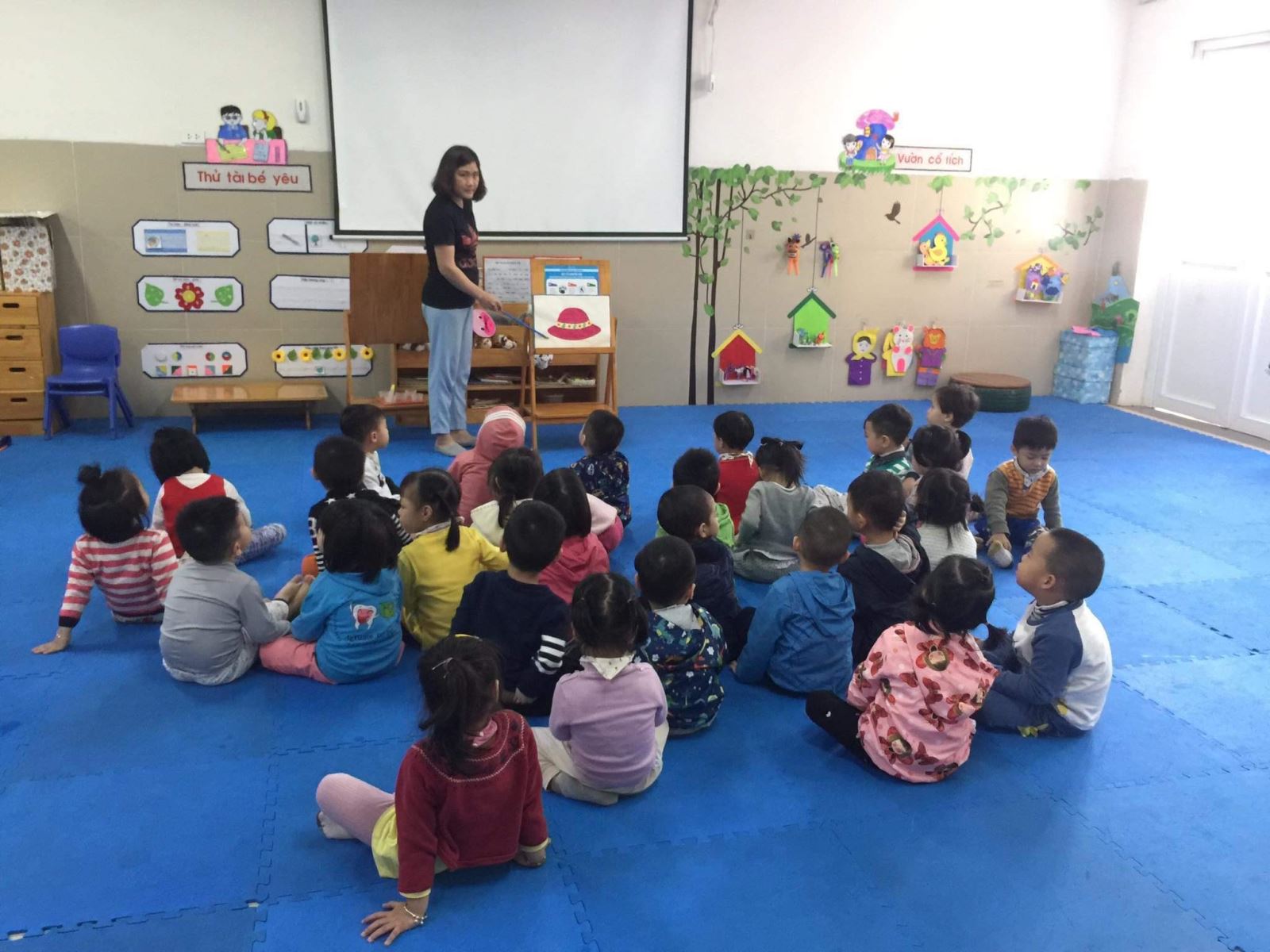 Nhận thức được tầm quan trọng đó, hôm nay, các bé lớp C1 được cô giáo tổ chức giờ học tạo hình với nội dụng: Xé dán trang trí cái mũ. Giờ học giúp các bé có thêm kỹ năng xé dán và trang trí theo quy tắc: