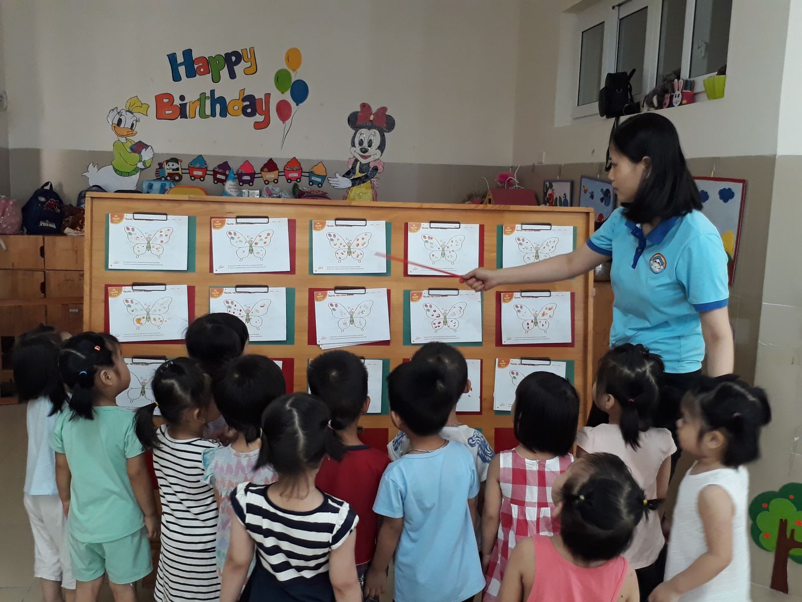 Với giờ học tạo hình “Trang trí cánh bướm” cô tạo cho trẻ tâm thế thoải mái trước khi vào bài học.