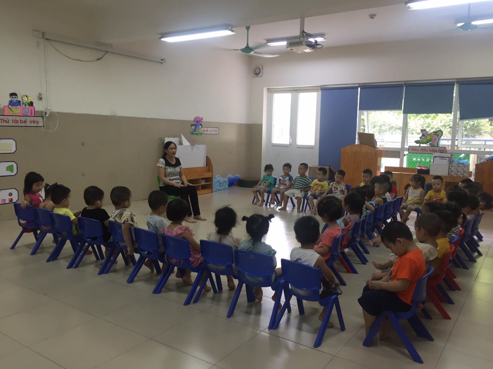Bé ngồi ngoan chờ cô chia vở