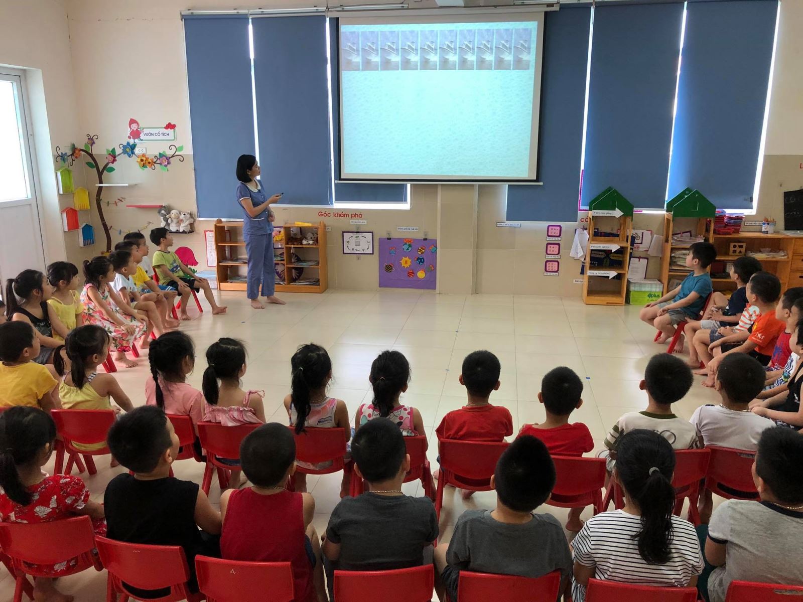 Các bạn nhỏ rất hào hứng tham gia giờ học và trả lời câu hỏi của cô.