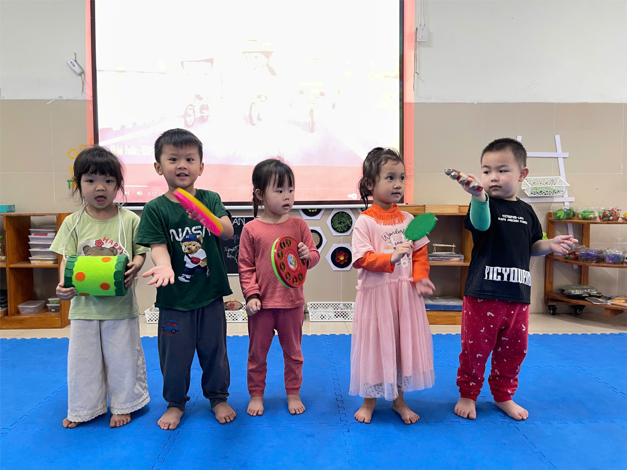 Hiểu được tầm quan trọng của việc giáo dục âm nhạc cho trẻ, các cô giáo luôn vận dụng, thiết kế các bài giảng, tìm hiểu các phương pháp mới giúp trẻ luôn hứng thú trong giờ học, tạo cho trẻ không gian học thoải mái mà hiệu quả cao. Đến với tiết âm nhạc của các bé lớp MGB C1, các bé được hòa mình trong không khí của những ngày đầu đến trường với bài hát “ Đi xe đạp", nghe hát "Em đi qua ngã tư đường phố", trò chơi "tai ai tinh"