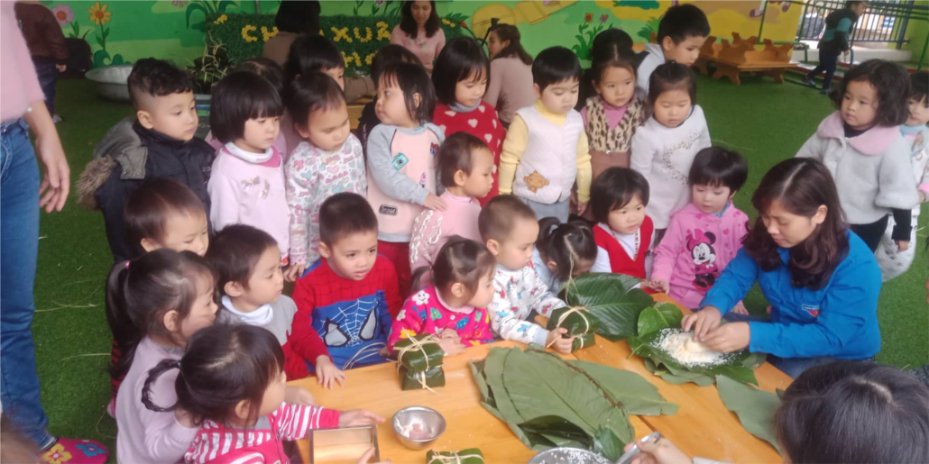 Cô Luyến còn dạy chúng tớ cách gói bánh chưng đấy các bạn ạ!