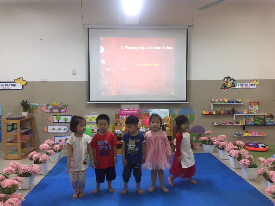Cả lớp đúng lên hát cùng cô bài hát "Gia đình nhỏ hạnh phúc to"