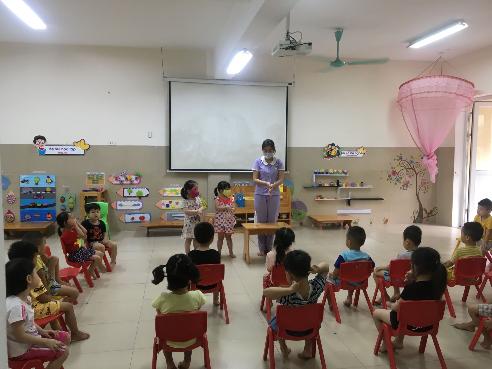 Tì !important;nh hình dịch Covid-19 tại nước ta đã có diễn tiến tốt hơn. Sở giáo dục và đào tạo Hà Nội đã chính thức thông báo và chỉ đạo các trường trên địa bàn cho học sinh đi học trở lại trường. Trong đó, học sinh cấp học mầm non sẽ đi học trở lại bắt đầu từ ngày 11/5/2020. Tuy dịch Covid-19 đã được đẩy lùi ở nước ta, xong chúng ta không được chủ quan. Vì vậy, theo chỉ đạo của cấp trên và Ban giám hiệu nhà trường, toàn bộ cán bộ, giáo viên, nhân viên trong trường tăng cường công tác vệ sinh khử khuẩn toàn bộ các lớp học và các khu vực trong trường, các đồ dùng đồ chơi của trẻ, đồng thời, nhà trường cũng đã xây dựng kế hoạch và chuẩn bị sẵn sàng công tác phân luồng, giãn cách học sinh, kiểm tra thân nhiệt cho tất cả trẻ và phụ huynh khi các con bắt đầu đi học trở lại. Mong sao dịch Covid-19 sẽ không bao giờ quay lại nữa để cho mọi người được yên tâm sống và làm việc, để các bé được vui chơi thỏa thích, được mỗi ngày đến trường là một ngày vui và an toàn nữa. Các giáo viên lớp mẫu giáo bé C3 cũng đã tích cực vệ sinh thật sạch sẽ toàn bộ lớp học, các đồ dùng đồ chơi và đồ dùng vệ sinh cho trẻ như chăn, chiếu, giường, gối, cốc, khăn mặt, các giá tủ và nhiều đồ dùng khác...... nhằm phòng dịch Covid-19 thật tốt cho trẻ khi sinh hoạt tại lớp. Trong ngày đầu trở lại lớp học, hôm nay các cô sẽ dạy các con bài học " Bé học cách phòng chống dịch Covid - 19" đấy. Sau đây là một số hình ảnh của các bé tham gia vào giờ học.
