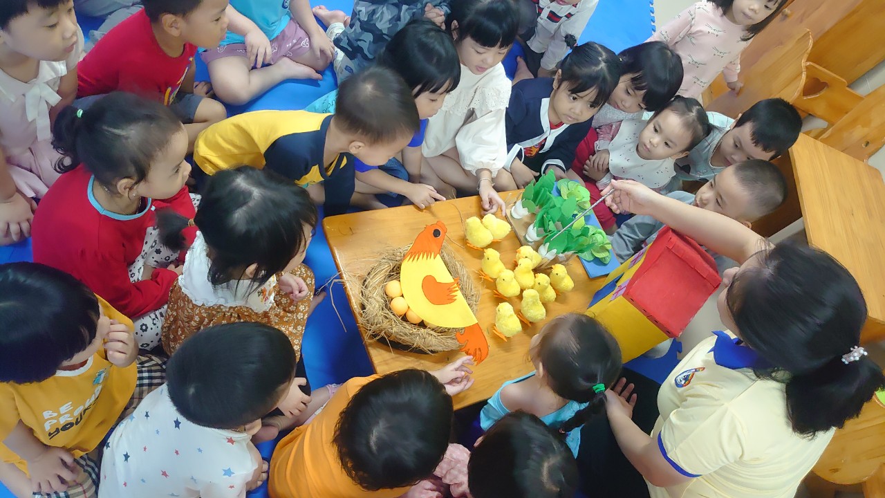 Hoạt động là !important;m quen với các tác phẩm văn học là loại hình nghệ thuật đặc sắc không thể thiếu được trong đời sống con người. Đặc biệt nó rất gần gũi với trẻ thơ, từ buổi thơ ấu trẻ đã sống tran hòa trong không khí lời ru “ầu ơ” đầy yêu thương tận tình của mẹ, bà… và đó cũng là cánh cửa mở ra chân trời nhận thức cho trẻ. Làm quen văn học là một hoạt động không thể thiếu được đối với trẻ ở lứa tuổi mầm non. Qua việc cho trẻ làm quen văn học chính là hình thành ở trẻ những tình cảm đạo đức tốt đẹp, những cảm xúc thẩm mỹ, phát triển trí tưởng tượng như: Lòng yêu thiên nhiên ở quả, cây hoa lá, lòng kính trọng yêu thương gần gũi và giúp đỡ những người thân xung quanh trẻ như ông bà, bố mẹ, cô giáo, anh chị em. Thông qua hoạt động này trẻ tái tạo và sáng tạo thêm những tình tiết của tác phẩm một cách hồn nhiên phù hợp với nội dung của tác phẩm nâng cao sự hiểu biết, trí tưởng tượng của trẻ. Đồng thời trẻ đọc thuộc thơ, kể lại chuyện được sẽ phát triển vốn từ, phát triển khả năng diễn đạt.Cùng đến với giờ học làm quen văn học :Thơ " Đàn gà con" của các bé lớp MGB C4 nhé :