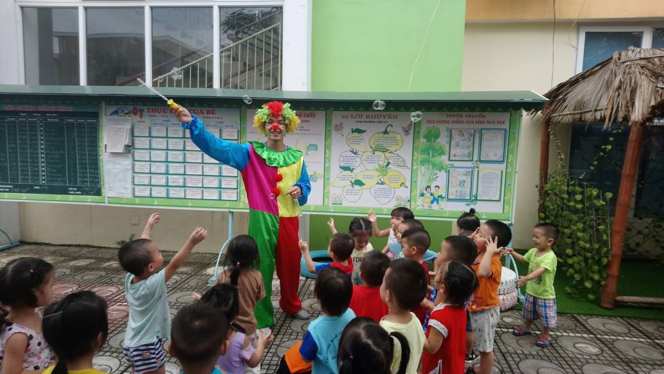 Không chỉ được thổi bong bóng cùng với cô, các bạn ý còn vui đùa với những quả bong bóng của chú hề nữa đấy !