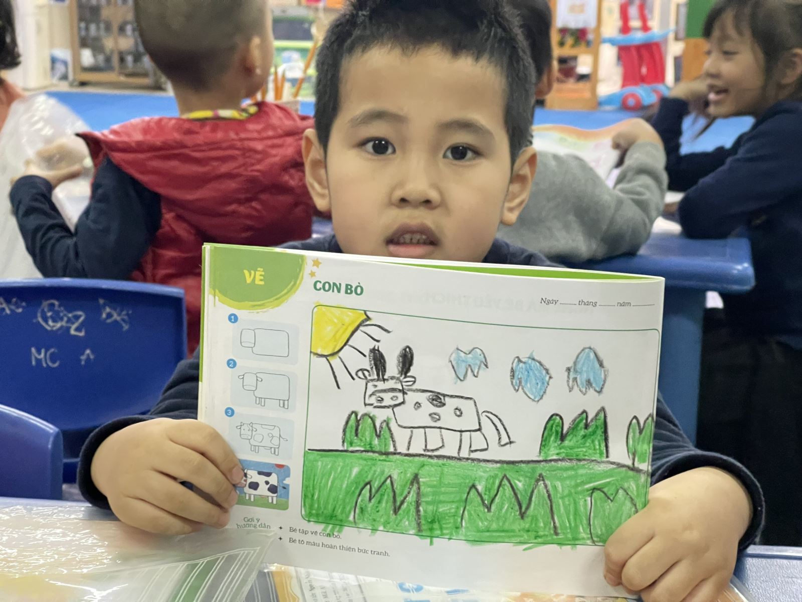 Dưới đây là một số hình ảnh trong giờ học Tạo hình:" Vẽ con bò" của các bạn nhỏ lớp MGL A3:
