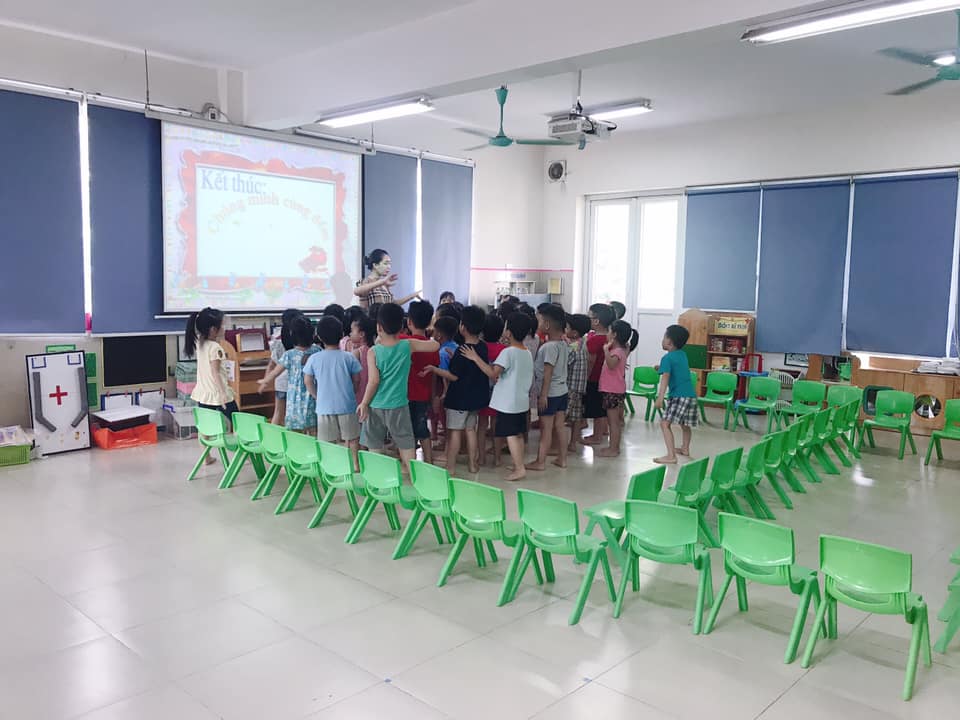 Kết thúc giờ học cô và các bạn nhỏ hát bài "Nhà của tôi"