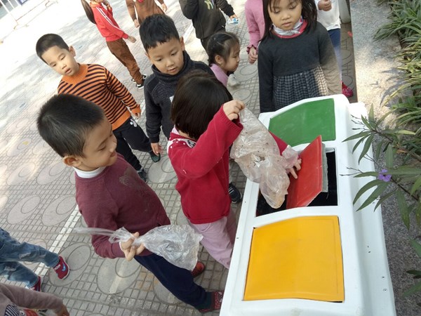 Chương trì !important;nh phòng, chống rác thải nhựa đã hình thành thói quen, ý thức bảo vệ môi trường, trong đó có phòng, chống rác thải nhựa cho trẻ em – thế hệ chủ nhân tương lai của đất nước. Điều đó mới mang lại ý nghĩa lớn, hiệu quả lâu dài mà chúng tôi đang làm hôm nay. Được tham gia hoạt động thu gom, tá !important;i chế rác thải nhựa cùng nhà trường, các bạn nhỏ lớp MGL A3 cũng hiểu được mục đích, ý nghĩa của công tác phòng, chống rác thải nhựa. Các bạn nhỏ ở đây đã hạn chế sử dụng sản phẩm nhựa dùng một lần, biết phân loại rác thải nhựa để tái sử dụng. Ở trường học tại đây, các bé sẽ được uống nước bằng ca inox để sử dụng mà không hề dùng đồ cốc nhựa. Khi sử dụng xong sẽ được rửa sạch và sử dụng lại lần sau.