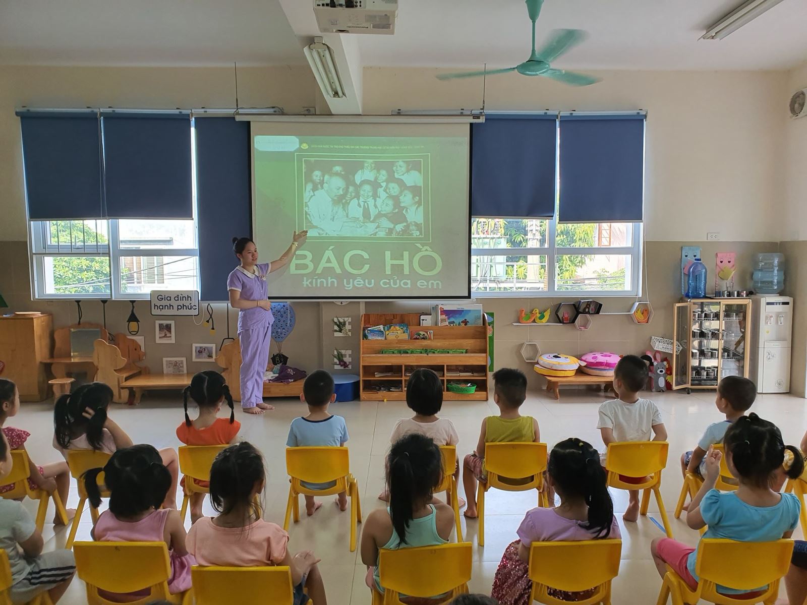 Mỗi giáo viên mầm non không chỉ học tập mà còn giáo dục cho thế hệ học sinh của mình “ Làm theo tấm gương đạo đức Hồ Chí Minh”. Học và làm theo tấm gương đạo đức Hồ Chí Minh góp phần giúp trẻ thể hiện lòng yêu nước, lòng kính trọng yêu quý đối với Bác. Việc làm này đã thực sự trở thành việc làm thường xuyên trong các nhà trường và trong mỗi người Việt Nam. Và cứ đến tháng 5, chủ đề về Bác lại càng được nâng cao, các bạn lớp MGN B3 cũng được tìm hiểu nghe các câu chuyện, bài thơ về Bác Hồ. Các bé rất vui và hào hứng khi nhắc đế Bác. Cùng xem các bạn lớp B3 học nhé.