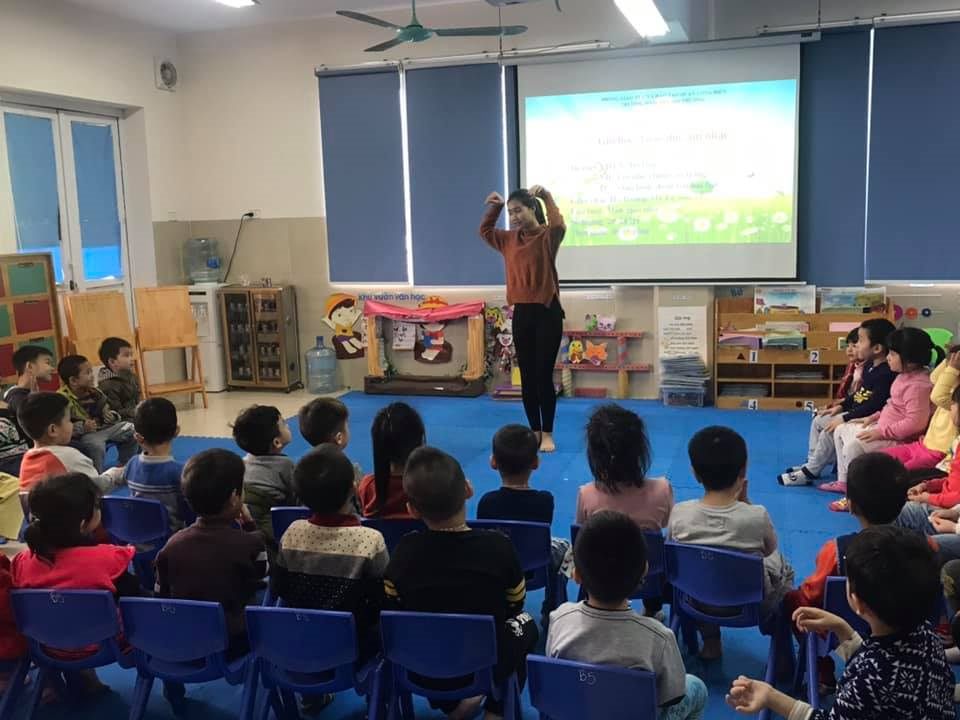 Các bạn nhỏ say sưa nghe cô giáo hát bài " Em như chim bồ câu trắng"