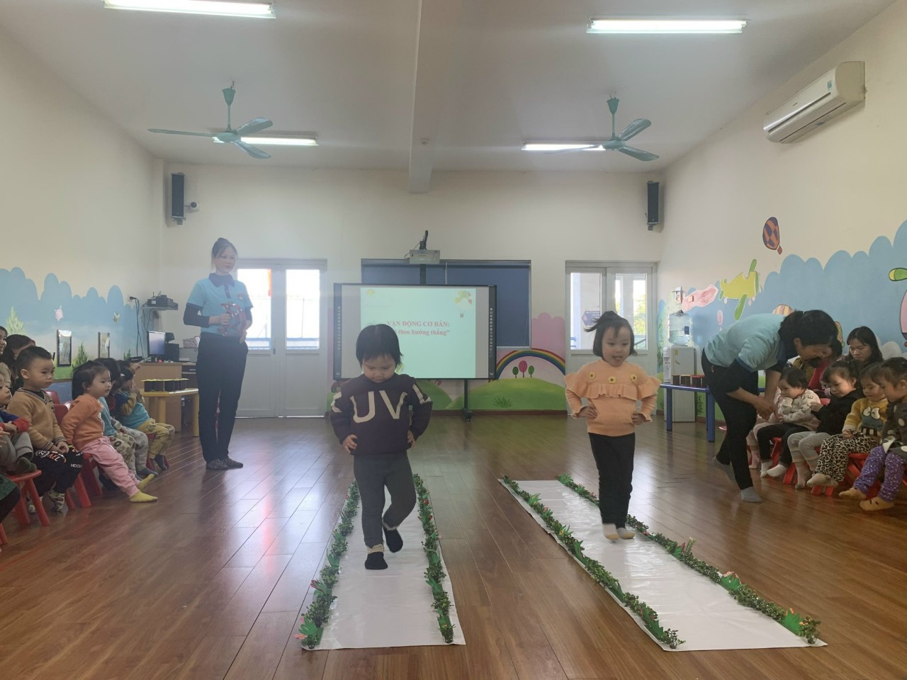 Tại trường Mầm non Gia Thượng, Bên cạnh các phong trào, các hoạt động ngoại khá thì Ban Giám Hiệu và các cô giáo luôn tìm tòi học hỏi để có những kiến thức hay những bài học bổ ích để truyền dạy tới các con học sinh và giáo dục phát triển vận động là một trong những nhiệm vụ của giáo dục góp phần phát triển toàn diện thể chất cho trẻ Mầm non. Hiểu được tầm quan trọng của giáo dục thể chất trong nhà trường BGH trường Mầm non Gia Thượng và các cô giáo khối nhà trẻ đã xây dựng và kiến tập lại giờ học phát triển thể chất “Đi theo hướng thẳng” tiết kiến tập thành phố để các cô giáo trong nhà trường được biết và tham gia học tập. Sau đây là một số hình ảnh trong giờ học.