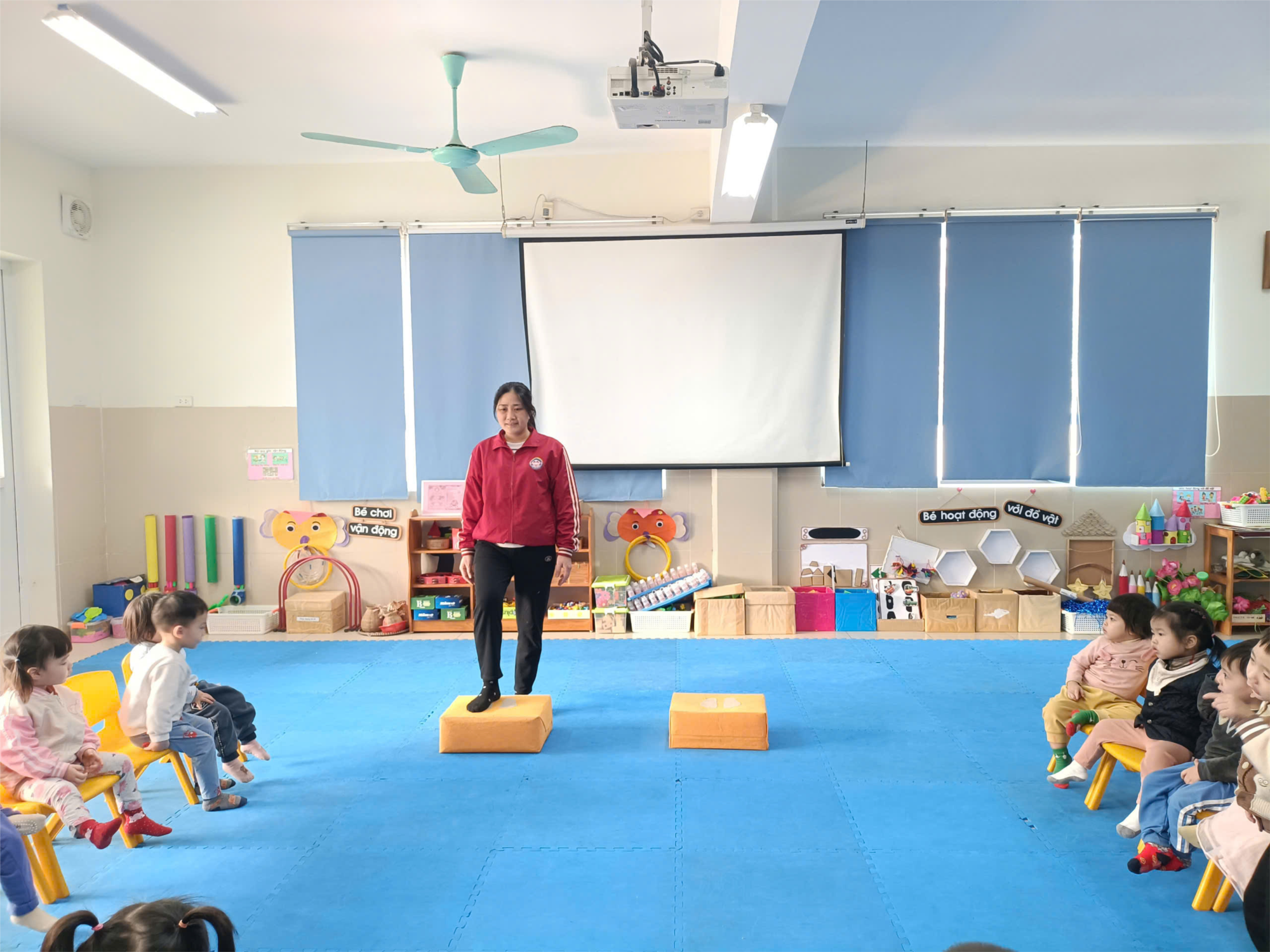 Hoạt động phát triển thể chất không chỉ có trong hoạt động học mà còn được các cô lồng vào các hoạt động khác như thể dục sáng, các trò chơi vận động ... Khi trẻ được tham gia trẻ vô cùng hào hứng và thích thú. Với các em bé nhà trẻ thì các bạn được cô hướng dẫn và tập cùng cô, đó cũng là tiền đề để các con có những kĩ năng cơ bản khi lên mẫu giáo. Trong quá trình tham gia các hoạt động thể chất trẻ còn được phát triển thêm cả về mặt tình cảm – xã hội cũng như thẩm mĩ. Hoạt động thể chất tạo cho tinh thần trẻ được sảng khoái, vui vẻ, giúp phát triển mối quan hệ giữa cô và trẻ cũng như phát triển tốt mối quan hệ bạn bè trong phối hợp vận động cùng các bạn.