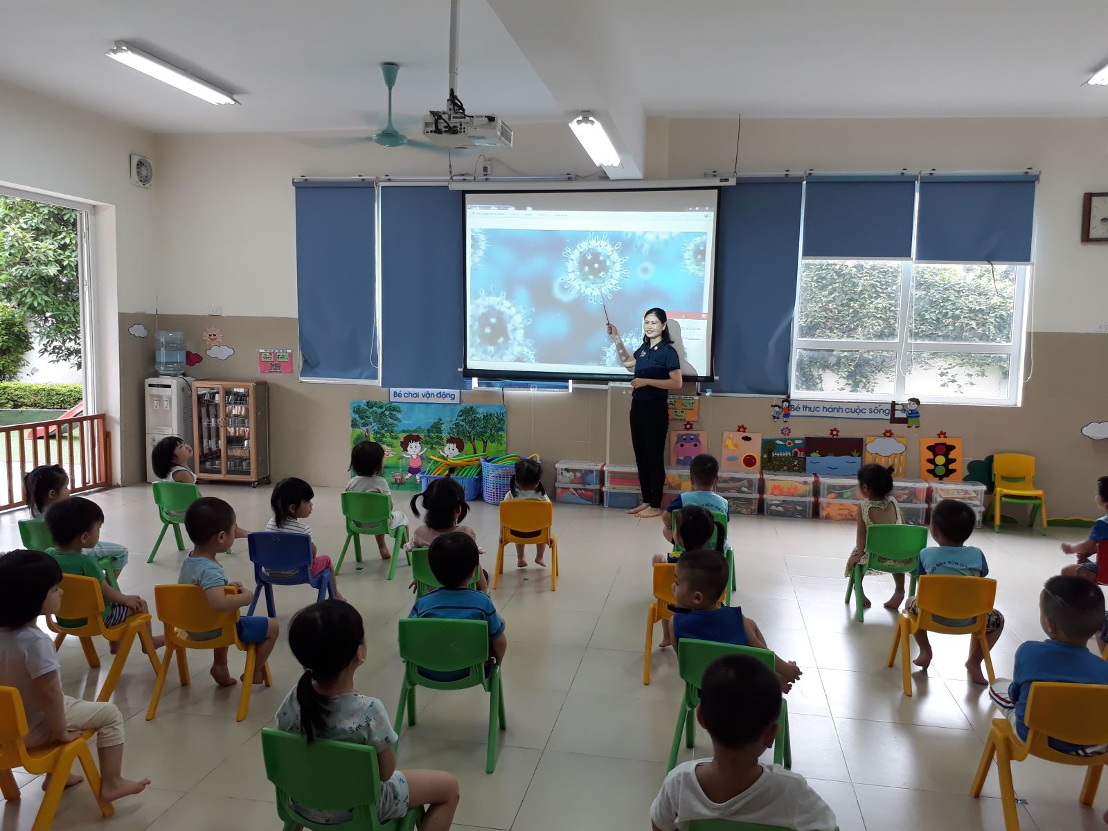Cô !important; luôn nhắc nhở trẻ uống nước và ăn các loại thực phẩm giàu chất dinh dưỡng để tang sức đề kháng cho cơ thể.