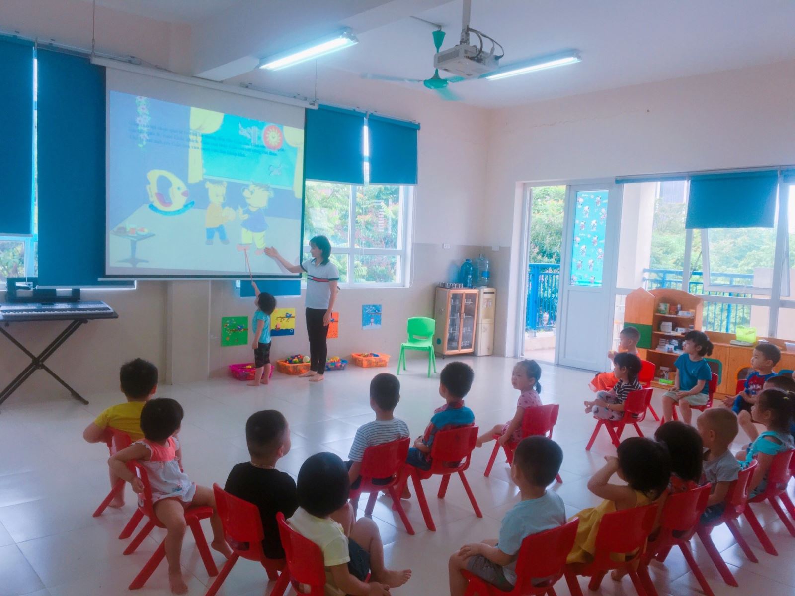 Cô và trẻ cùng hát bài hát: Ta đi vào rừng xanh