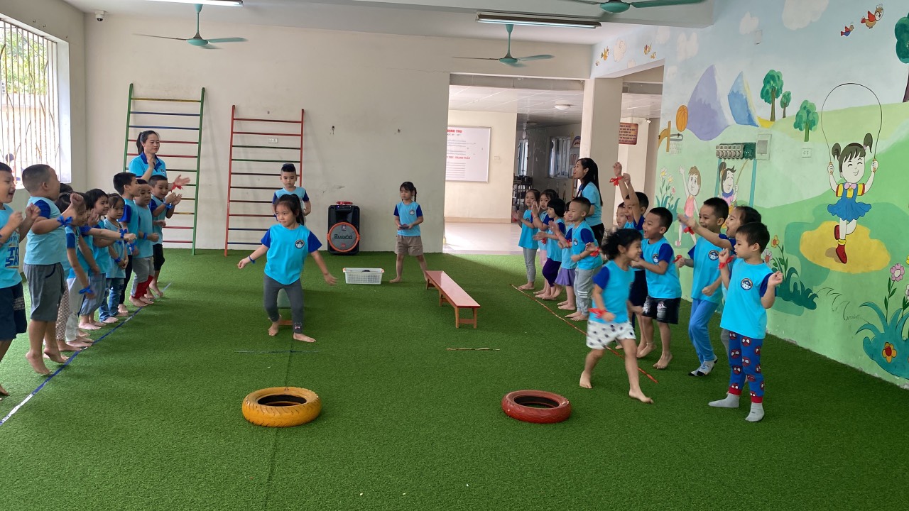 Trẻ lần lượt lên thực hiện vận động cơ bản