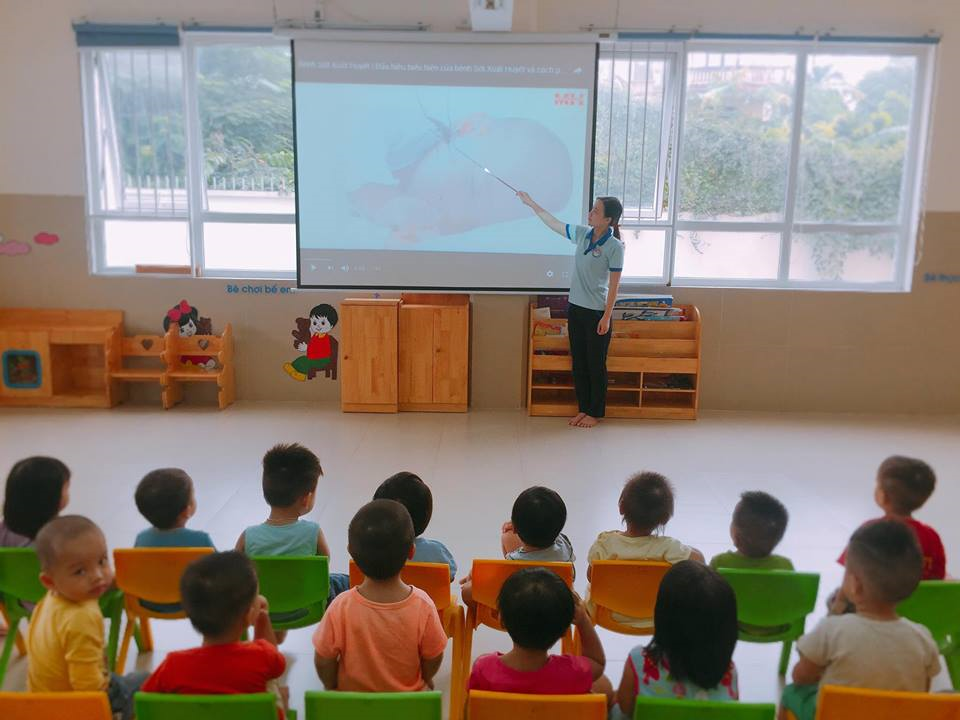 Hình ảnh: Cô đang tuyên truyền cho trẻ về bệnh sốt suất huyết.