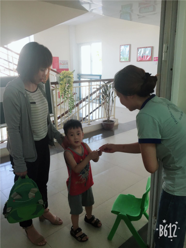 Sau khi kết thúc một ngày học, giờ trả trẻ là giờ mà các bạn nhỏ mong mỏi nhất. Các bạn ấy sẽ được ông bà, bố mẹ đón về nhà. Đây cũng là những phút giây ngắn ngủi để các cô trao đổi với phụ huynh về tình hình học tập tại lớp của con trong ngày. Đồng thời cũng là lúc phụ huynh chia sẻ thêm với cô về những sở thích cá nhân, những câu chuyện vui của bé tại gia đình, giúp phụ huynh và giáo viên kéo gần hơn sợi dây kết nối, tạo nhịp cầu tốt cho các bé có thể vững bước trên con đường học của mình.