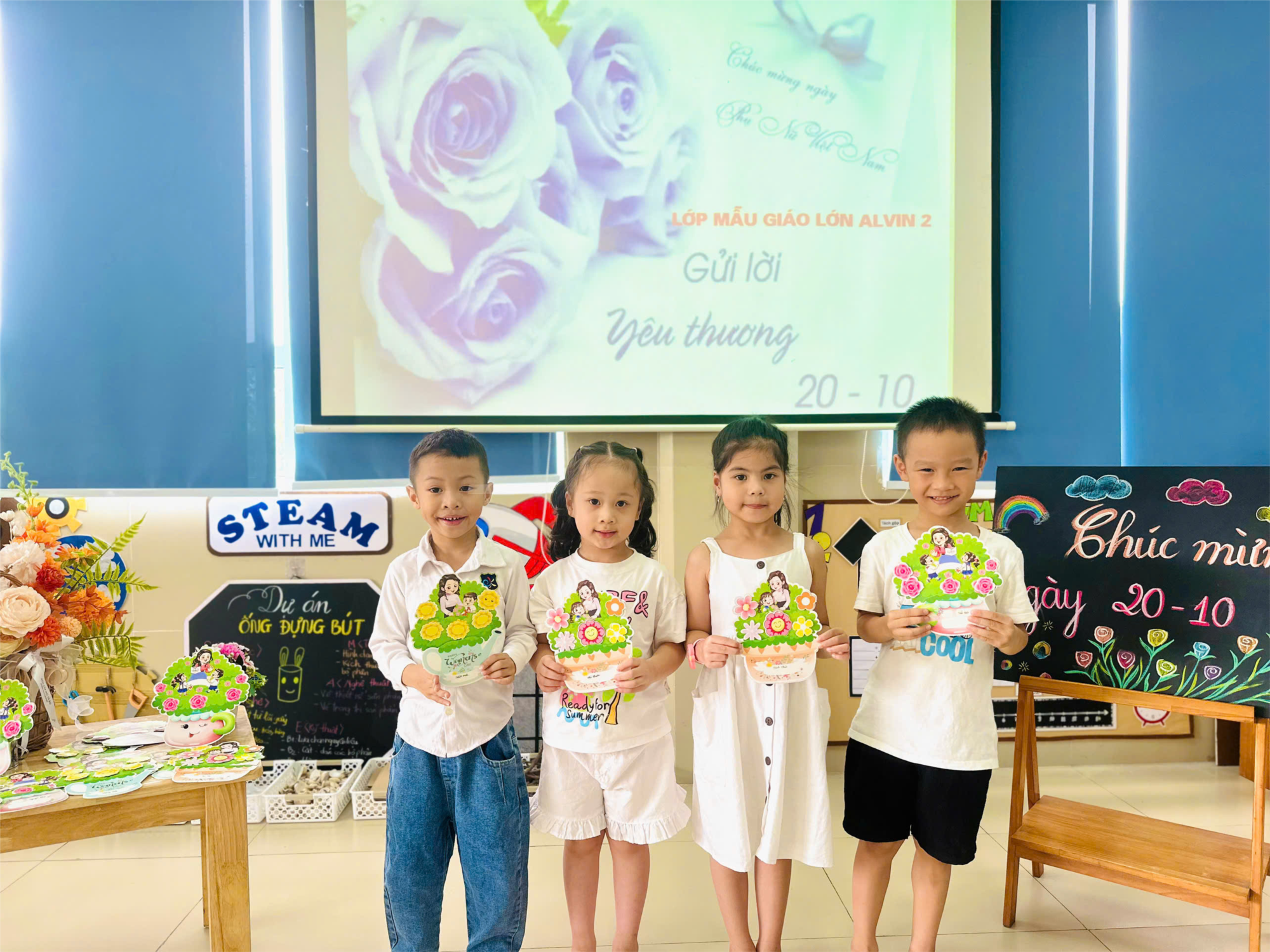 Ngày hôm nay các bạn nhỏ lớp MGL Alvin 2 được tham gia dự án “Món quà tặng bà và tặng mẹ” và các hoạt động chào mừng ngày 20-10 thật hào hứng và ý nghĩa. Dưới đây là 1 số hình ảnh của các bé tự tay làm thiệp trang trí tặng bà, tặng mẹ: