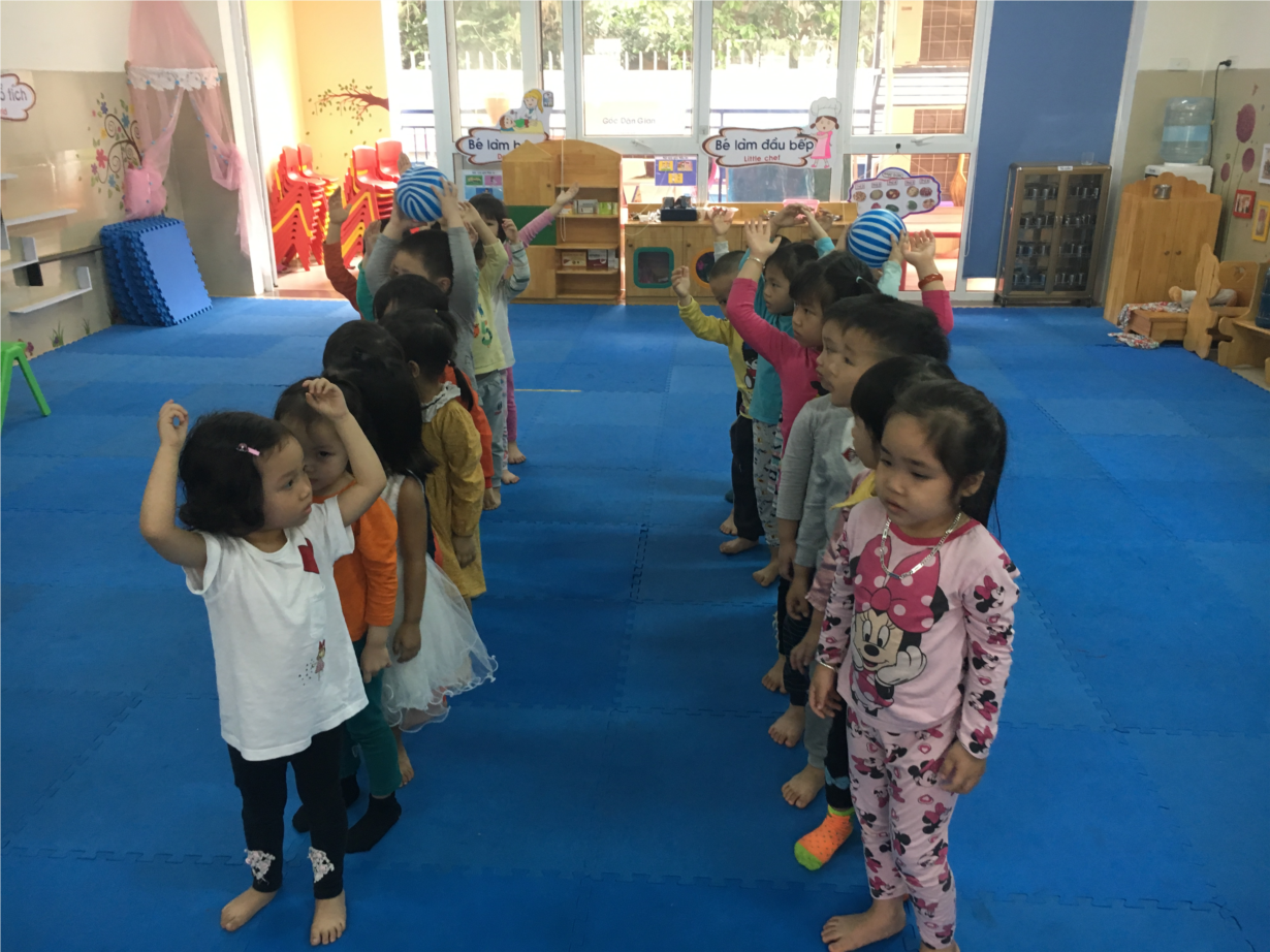 Cô và trò lớp MGB C3 đã cùng chơi với bóng thật là vui vẻ. trẻ thích thú, say sưa, đoàn kết, hợp tác khi chơi tập thể.