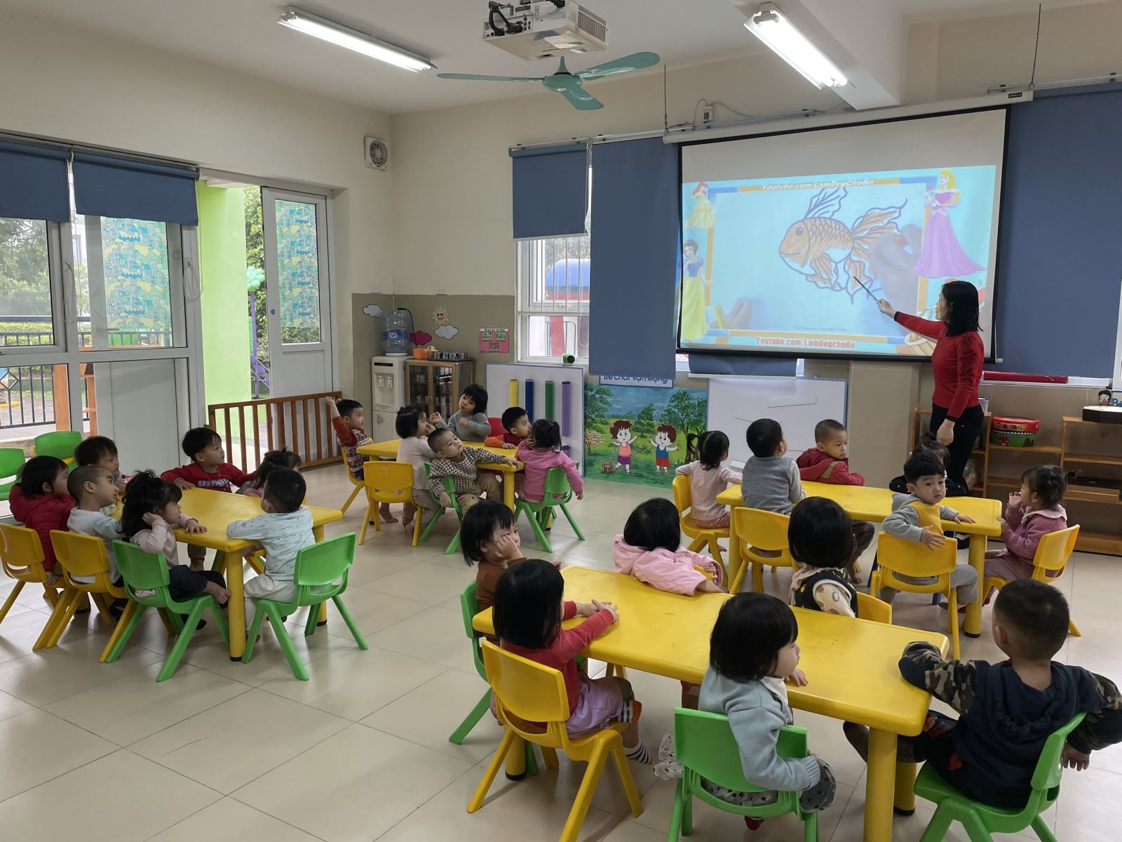 Các bé chăm chú tô màu con cá