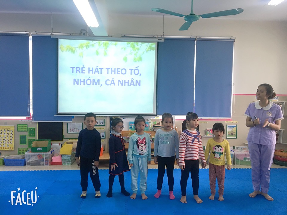 Sau khi nghe cô thể hiện bài hát " Lời chào của em", cả lớp sẽ cùng cô hát theo nhạc bài hát đó. Và tiếp theo sẽ là phần thể hiện bài hát theo tổ, nhóm và cá nhân. Cùng xem các bạn nhỏ của chúng ta tự tin như nào nhé!