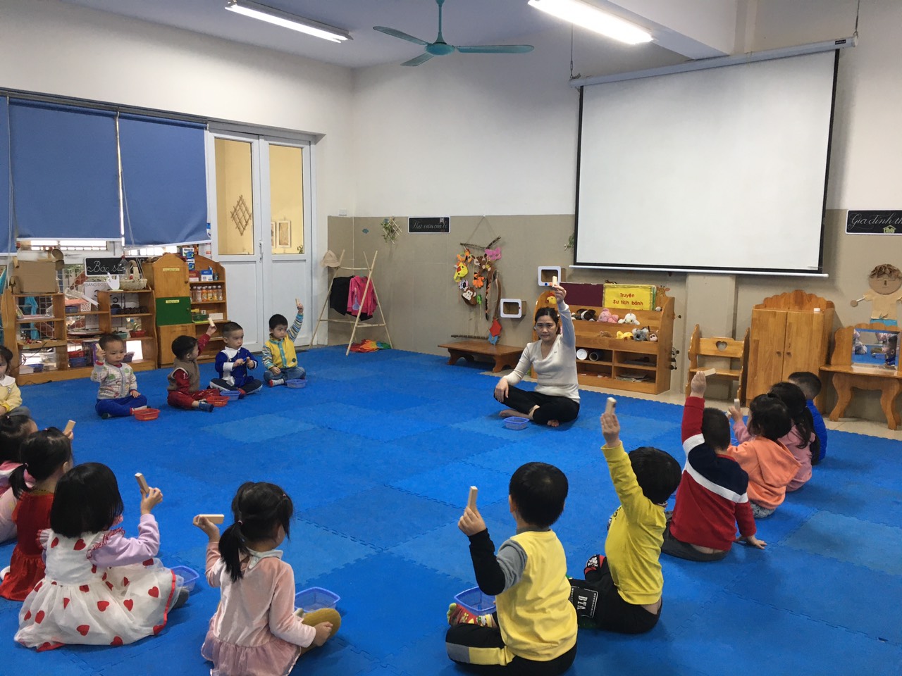 Trẻ thực hiện theo yêu cầu của cô