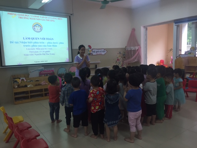 Cô giáo đang dạy phía sau các bạn ấy có ai đấy