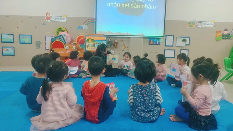 Trước khi vào bài học, cô và trẻ cùng nhau trò chuyện về biển: